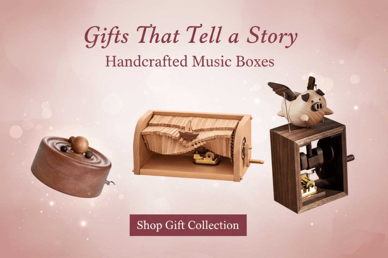 Wave Motion Sailboat Music Box | Hand-Crank Wooden Ornament | Ocean Waves Stress Relief Gift