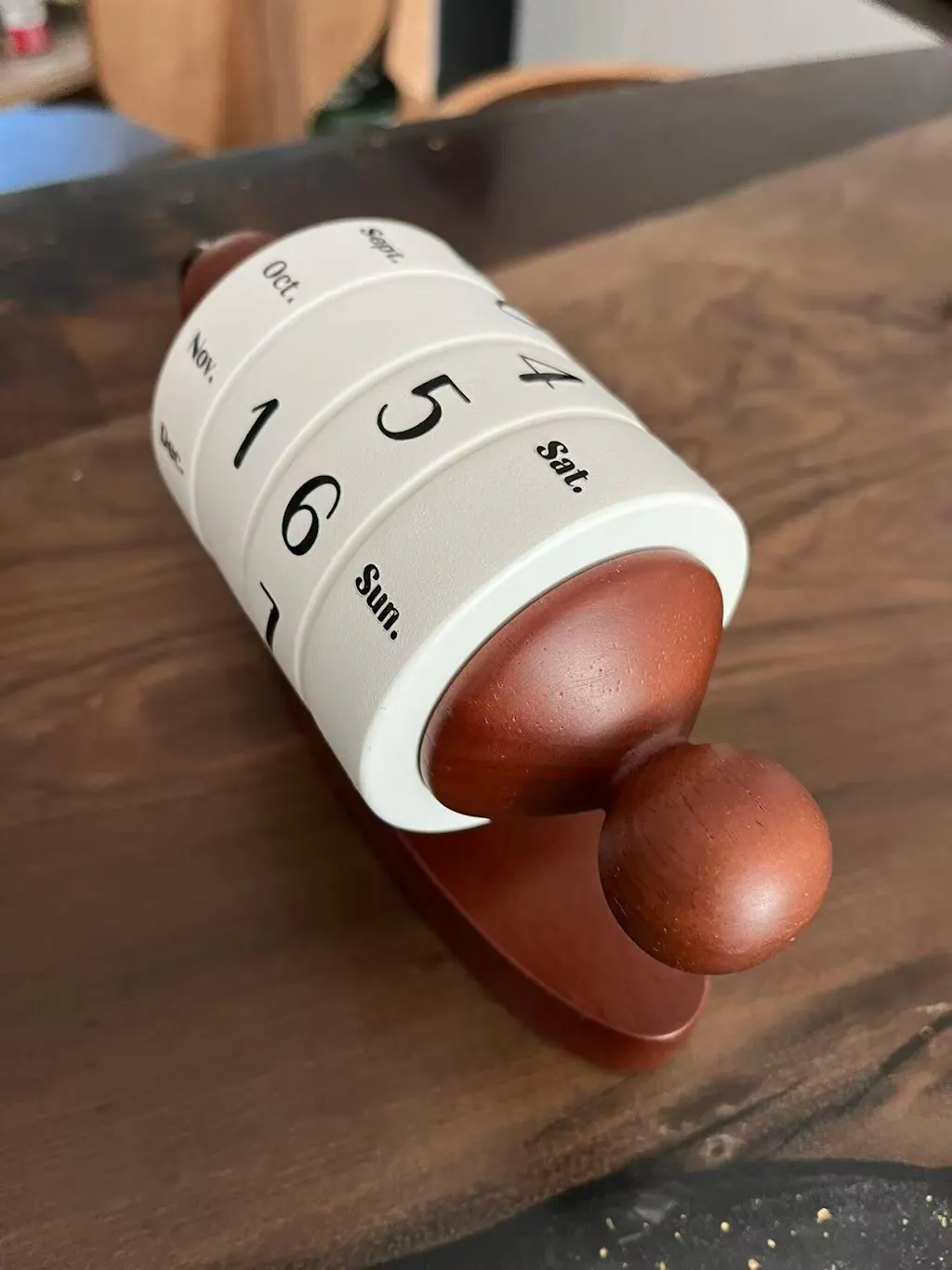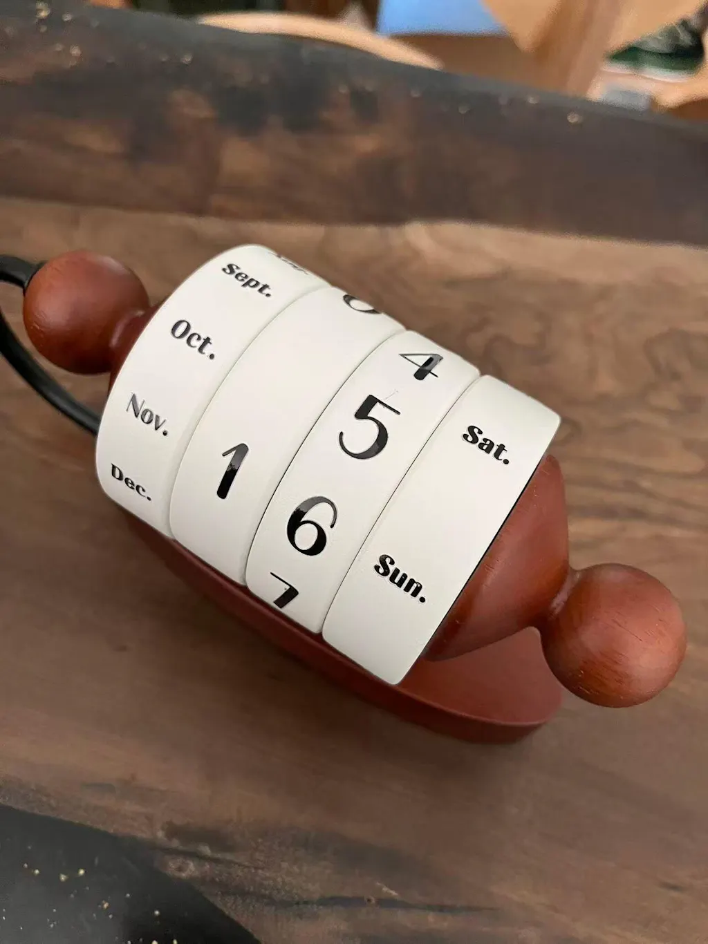 I deliberately chose this over a digital calendar. The wooden vintage design is a statement and the rotation is satisfying. No batteries needed