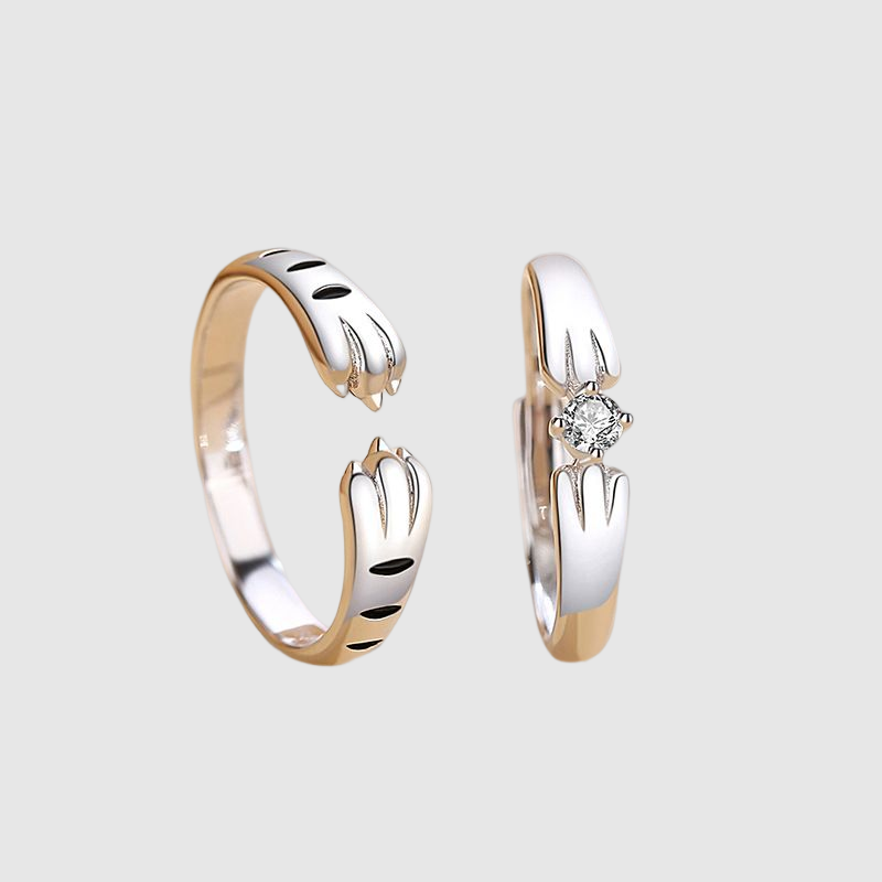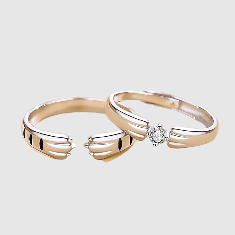 Bagues de couple en forme de patte de chat, design léger et luxueux