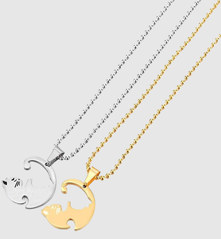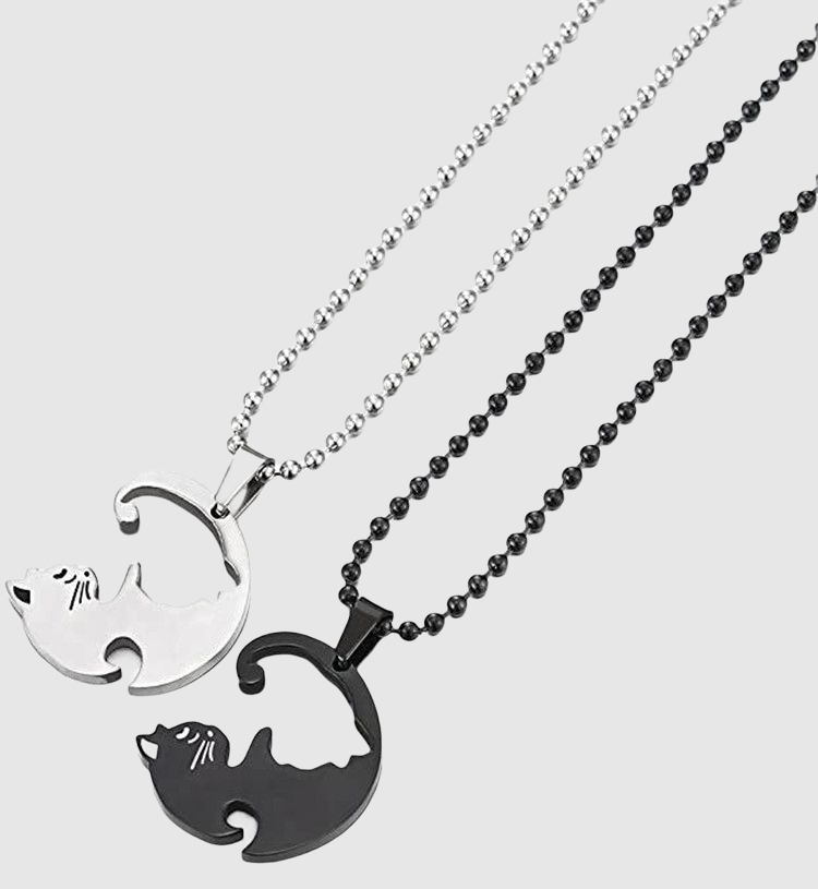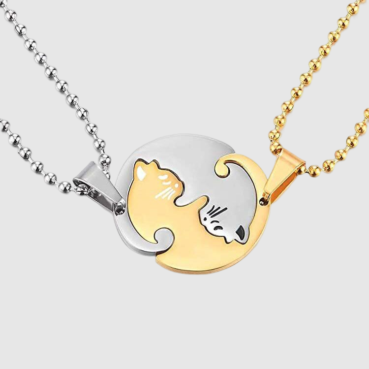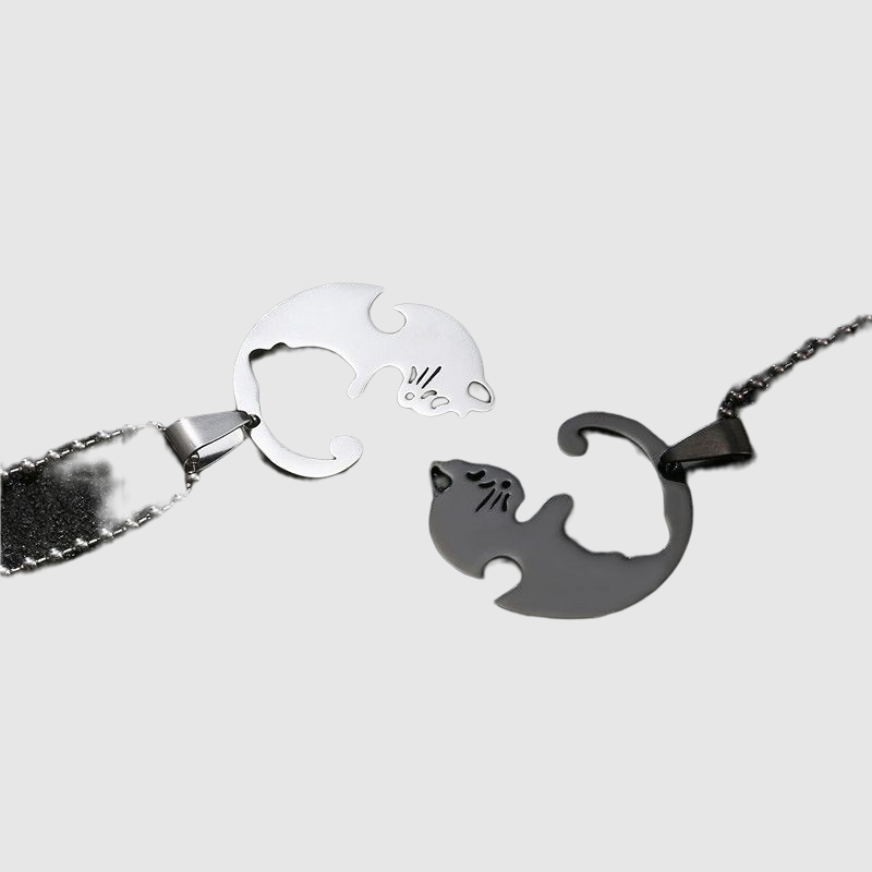 -Inspiration de conception : Le thème est celui de deux chats blottis l'un contre l'autre, et il est divisé en deux colliers séparés, symbolisant que deux amoureux peuvent non seulement s'embrasser, mais aussi avoir leur propre espace personnel