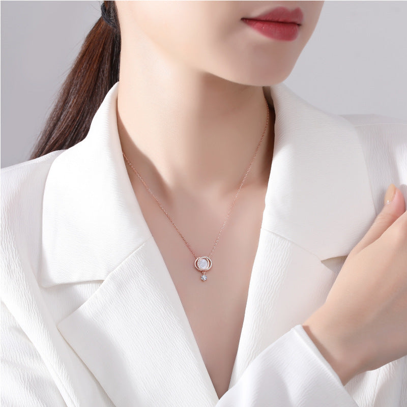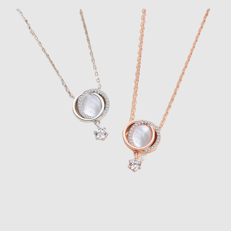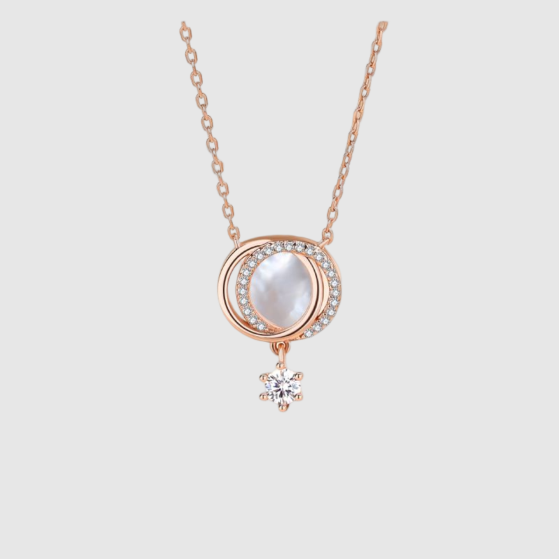 Inspiration design : Le design de la double lune, avec ses coquillages et ses zircons, met en valeur ton tempérament et ton charme. C'est comme la première fois que je t'ai rencontré, le clair de lune était doux, je t'ai dit que la nuit était belle ce soir, et tu as dit oui.
