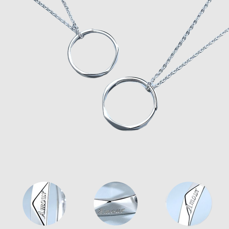 Inspiration design : Bagues et colliers peuvent être séparés ou combinés pour former un collier avec un motif « amour ». Ce motif symbolise la façon dont on s'entend en amour. On peut avoir du temps libre pour faire ce qu'on aime, se serrer dans les bras et partager des moments heureux ensemble. Parfois, on est indépendant, parfois, on est connecté. C'est probablement la plus belle chose en amour.