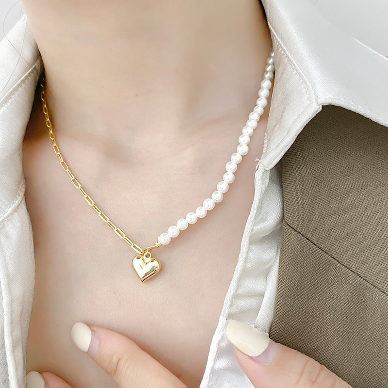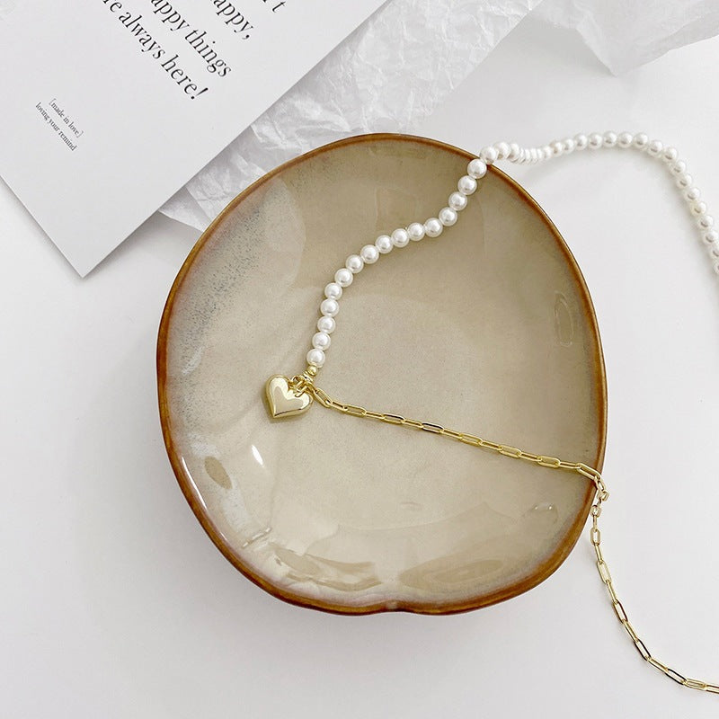 Collier de perles d'amour en or pour filles, petite chaîne de clavicule de luxe légère et parfumée