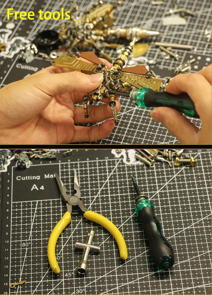 Modèle d'insecte mécanique manuel Tide Play Libellule Décoration DIY Jouets Créatifs Cadeau d'anniversaire