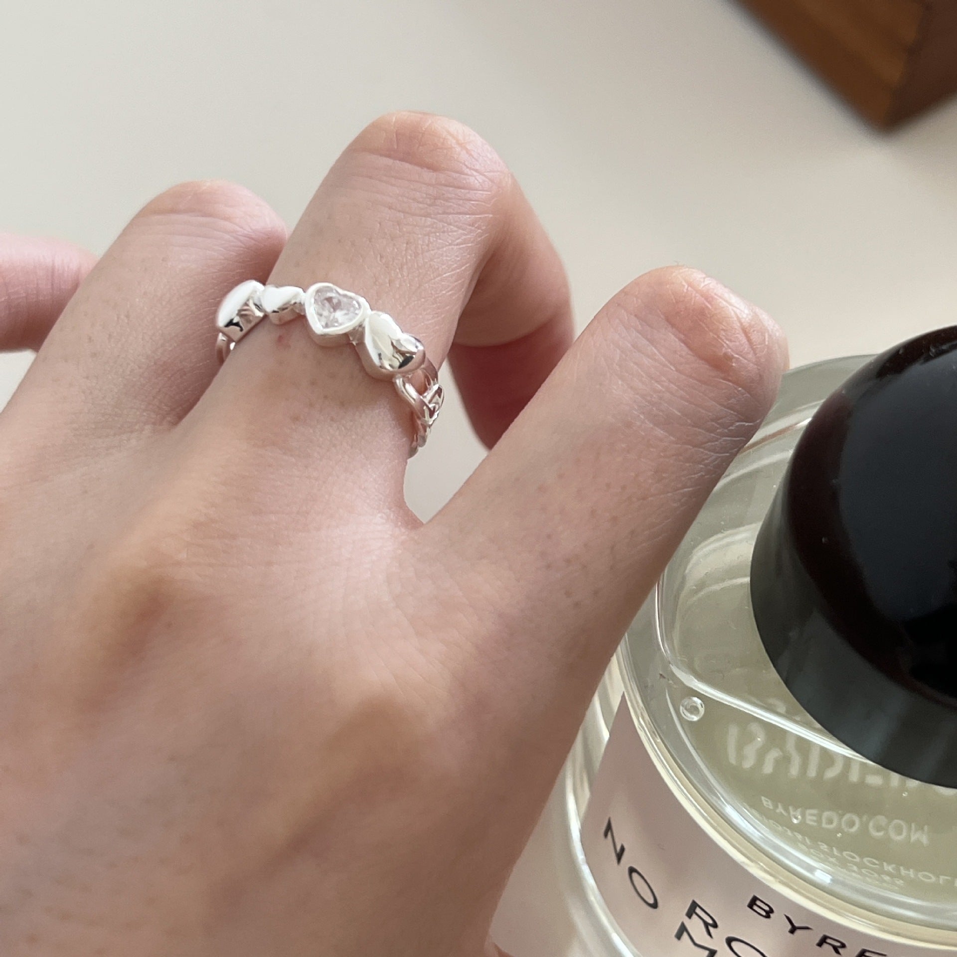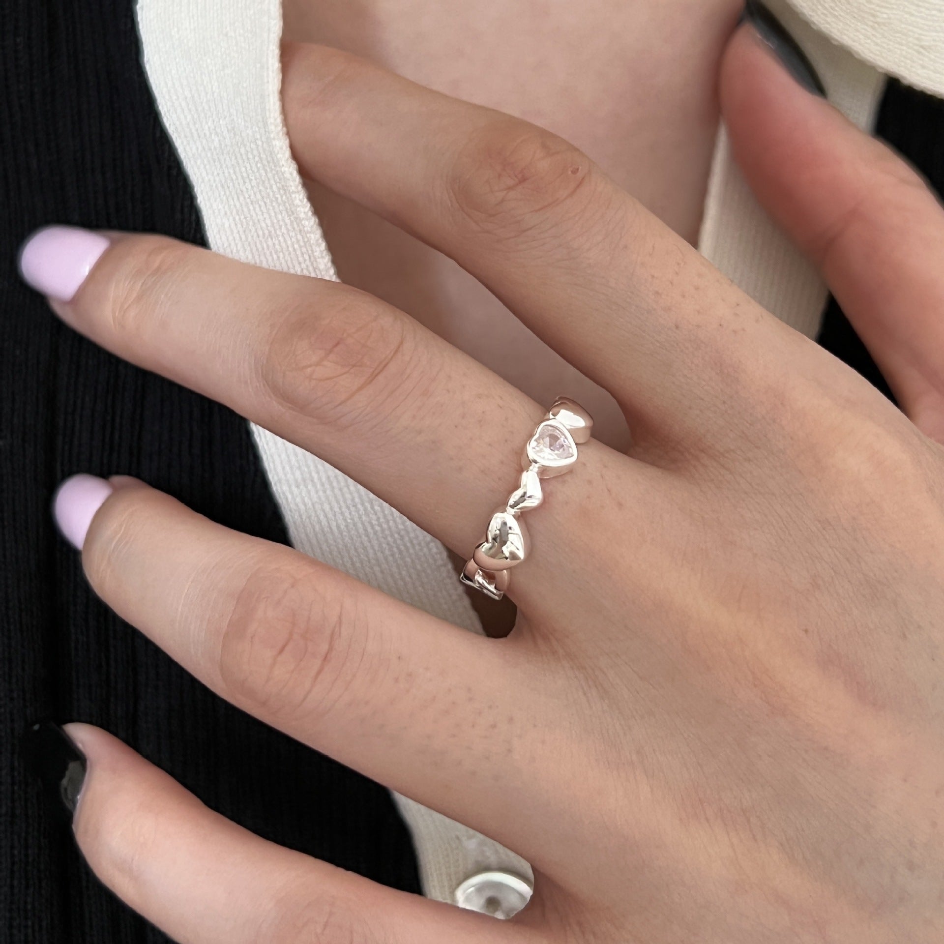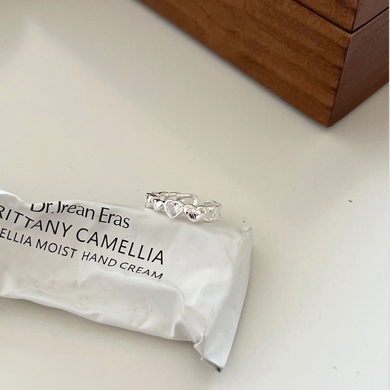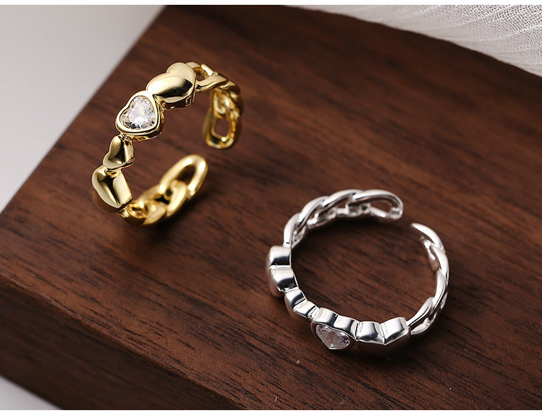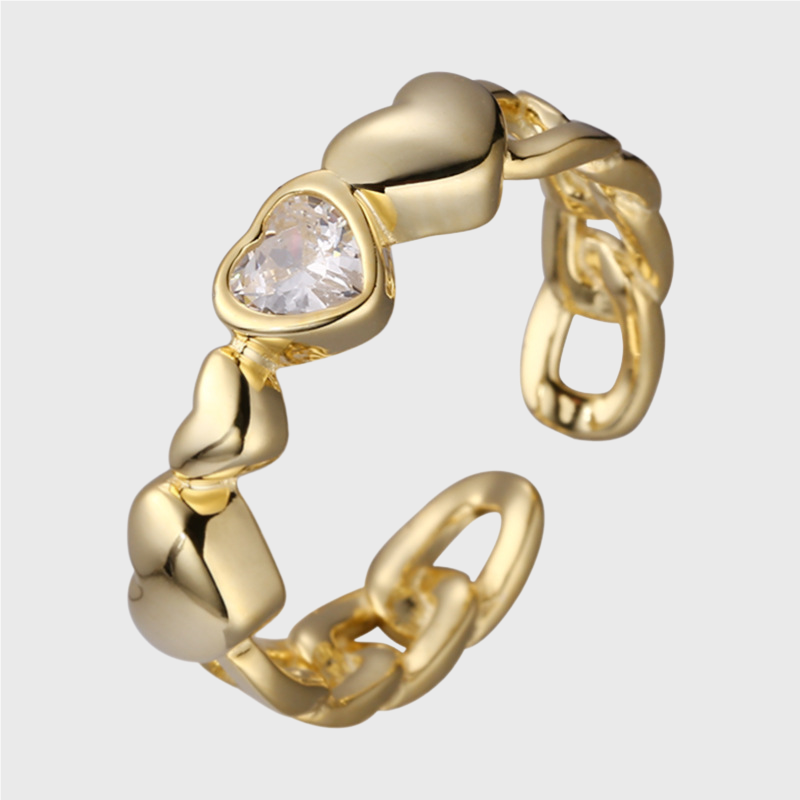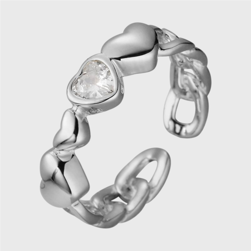 Inspiration : Le design est composé de plusieurs cœurs entrelacés, tel un magnifique collier. Chaque cœur est gravé des convictions et de la persévérance des deux amoureux, différentes mais subtilement liées. Cette bague « chaîne de cœurs » brille au soleil et devient un bijou sur lequel on peut compter.