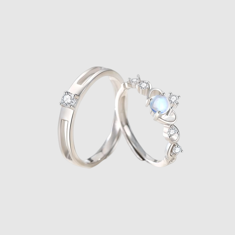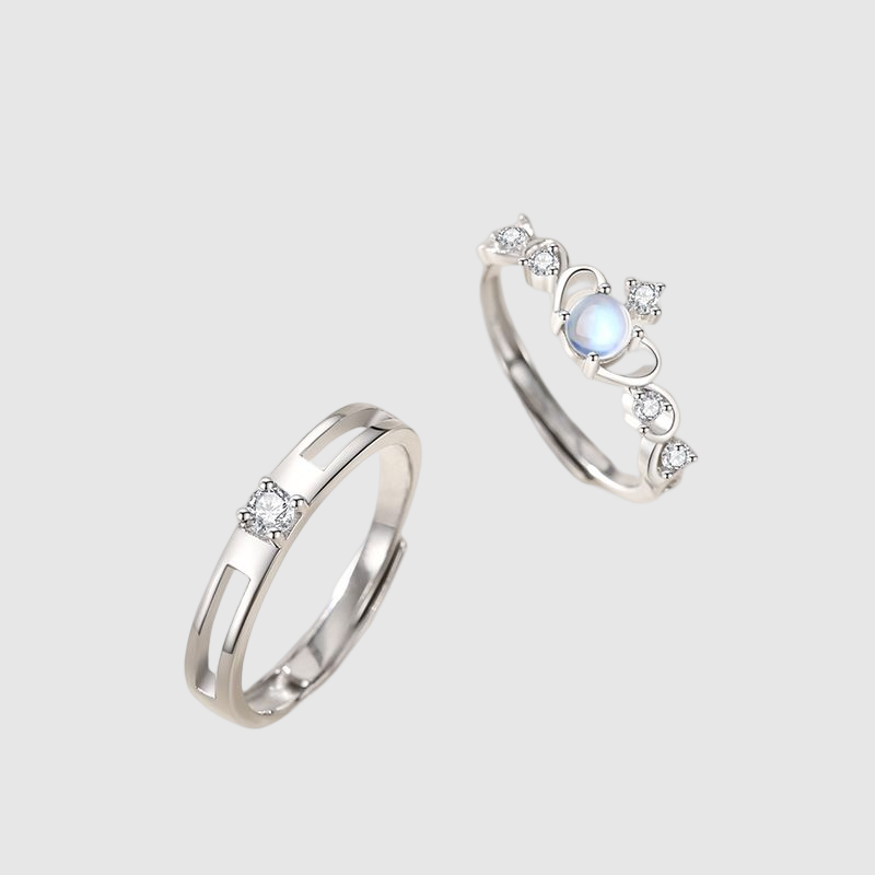 Bague couple en pierre, design de niche, couronne, cadeau de Saint-Valentin