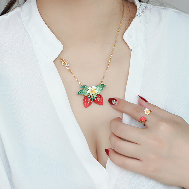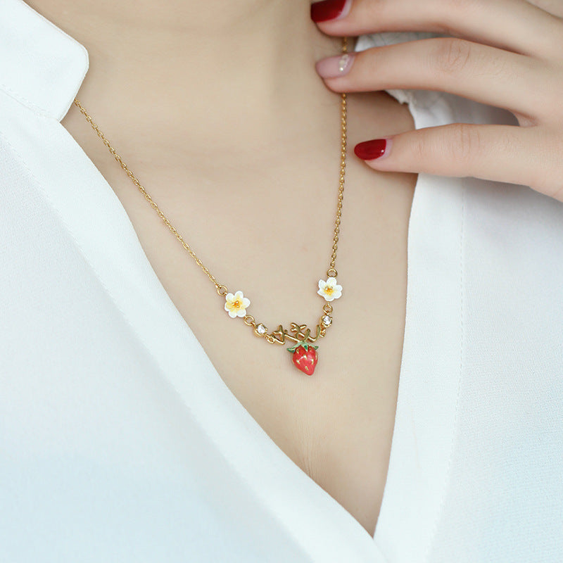 Collier fraise sucrée émaillé peint à la main Nouvelle chaîne de clavicule de la minorité Mori
