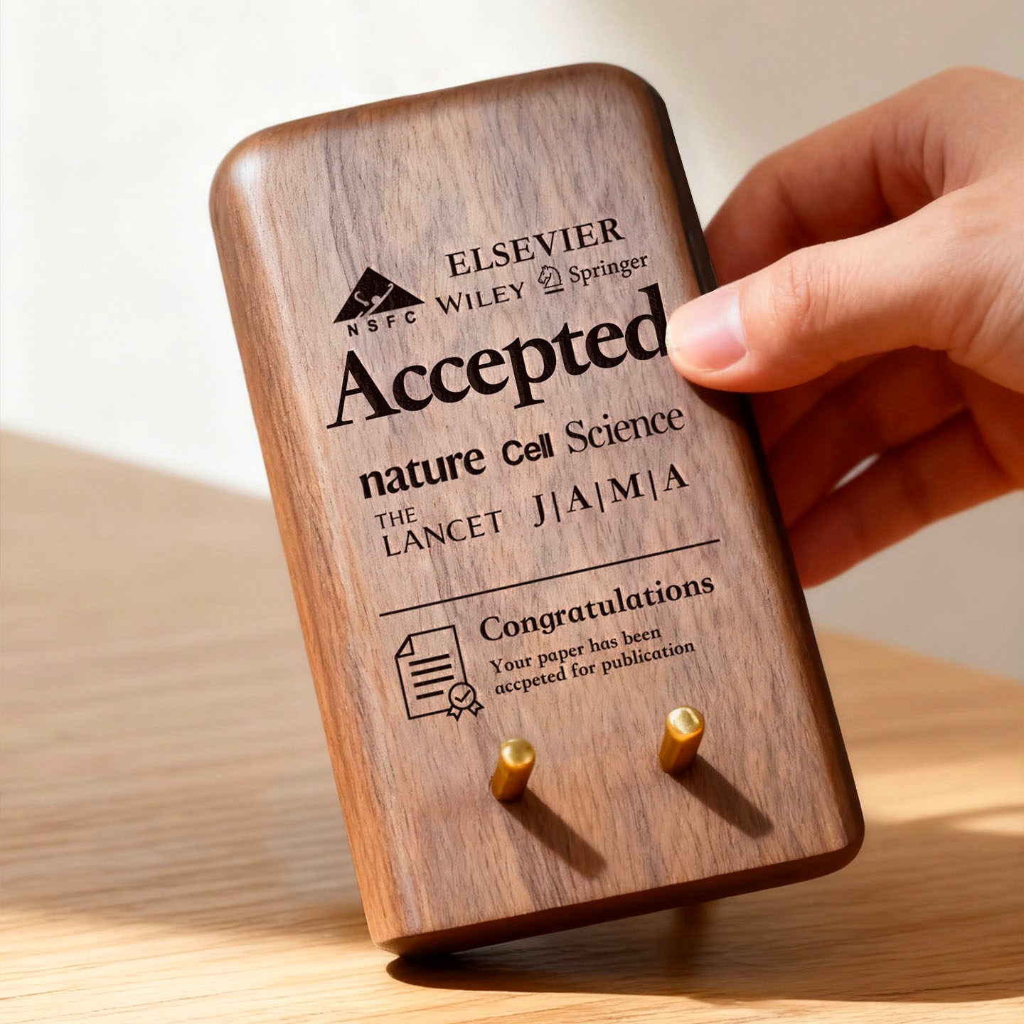 - Custom Engraving Available: Personalize the front panel with your achievement details—journal names (Nature, Cell Science, The Lancet, JAMA), acceptance messages, congratulations text, or any meaningful words that celebrate your success. Each engraving is precisely laser-etched into the natural wood for permanent, beautiful results.