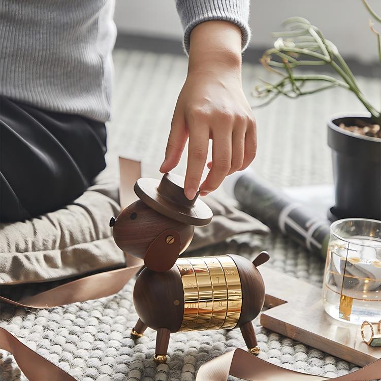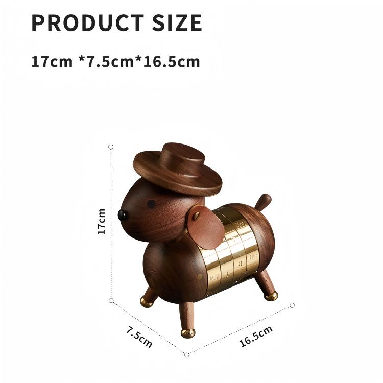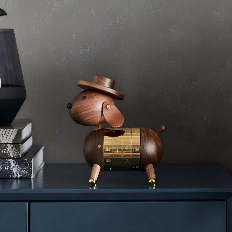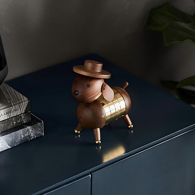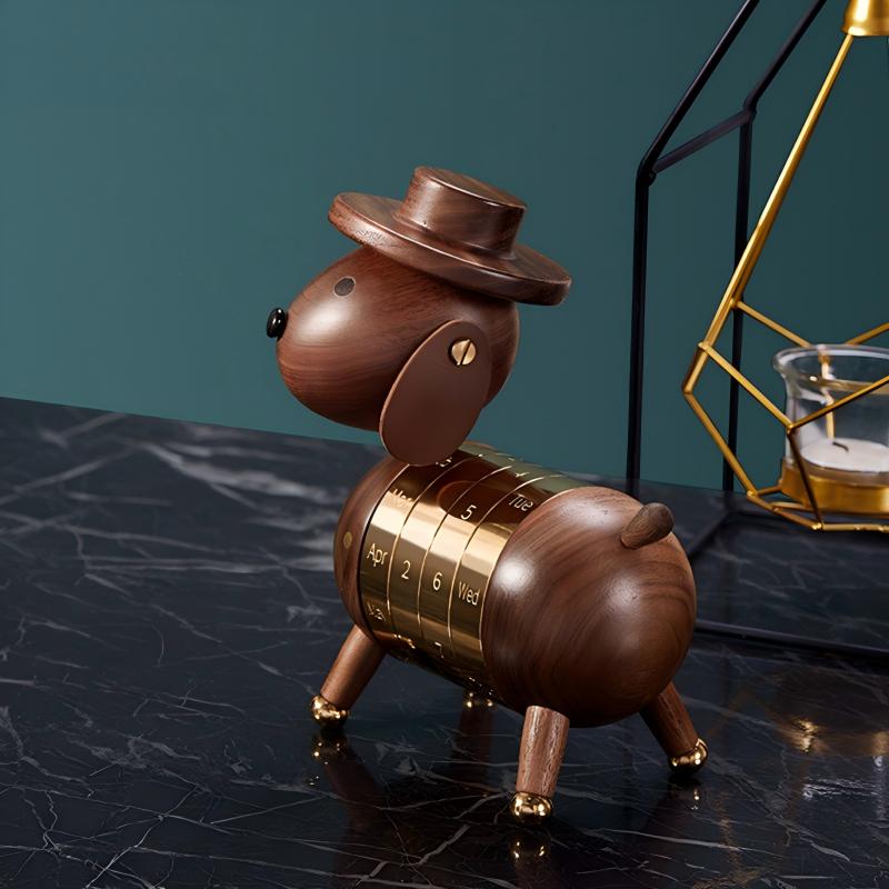 Meet your most loyal desk companion—a charming handcrafted dog with a gentleman's hat who helps you track time with style and whimsy. Featuring a rotating brass calendar barrel and magnetic head design, this premium wood ornament transforms the mundane task of checking dates into a delightful daily ritual that brings smiles and sophistication to your workspace.