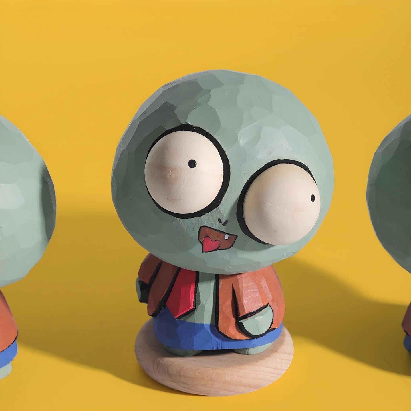 - Hand-Carved from Basswood: Every zombie is individually carved by hand from premium basswood—a fine-grained wood prized for its smooth carving properties and warm natural tone. No two pieces are identical, making each sculpture a one-of-a-kind handmade original.