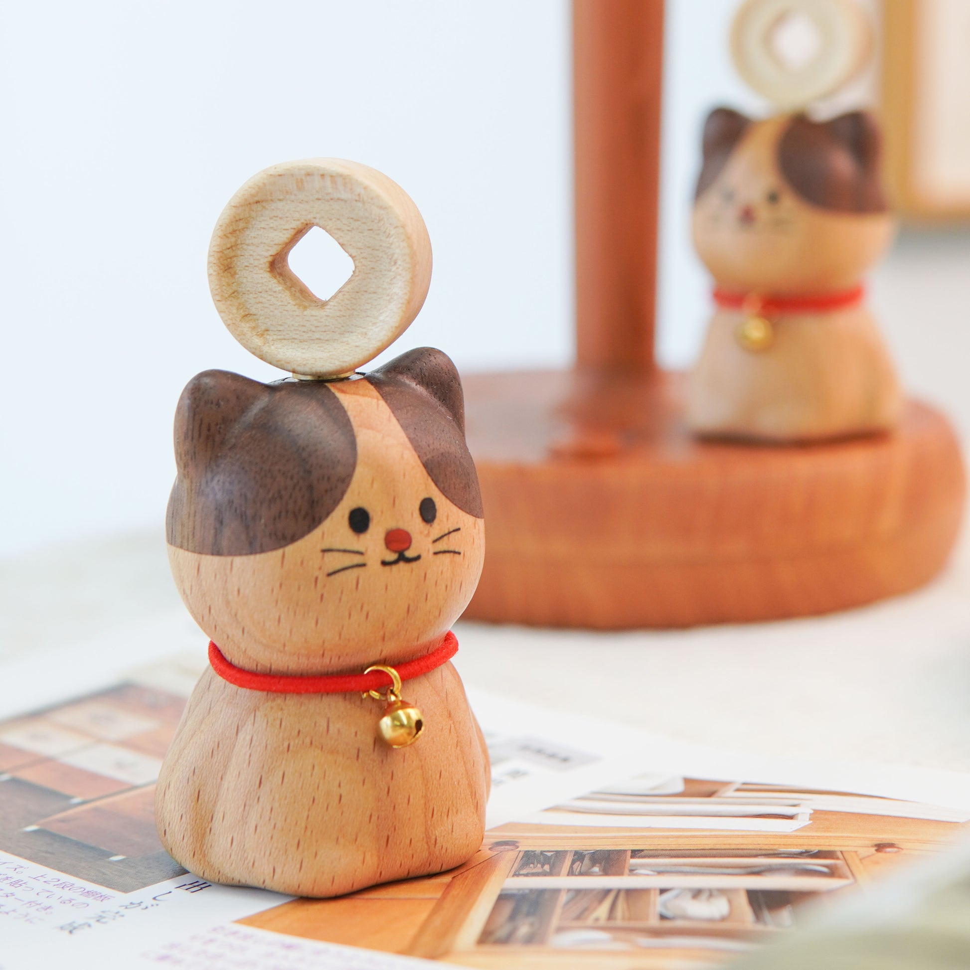 Lucky Fortune Pet Wood Sculpture - Handcrafted Desktop Ornament with Rotating Ingot