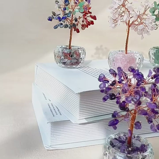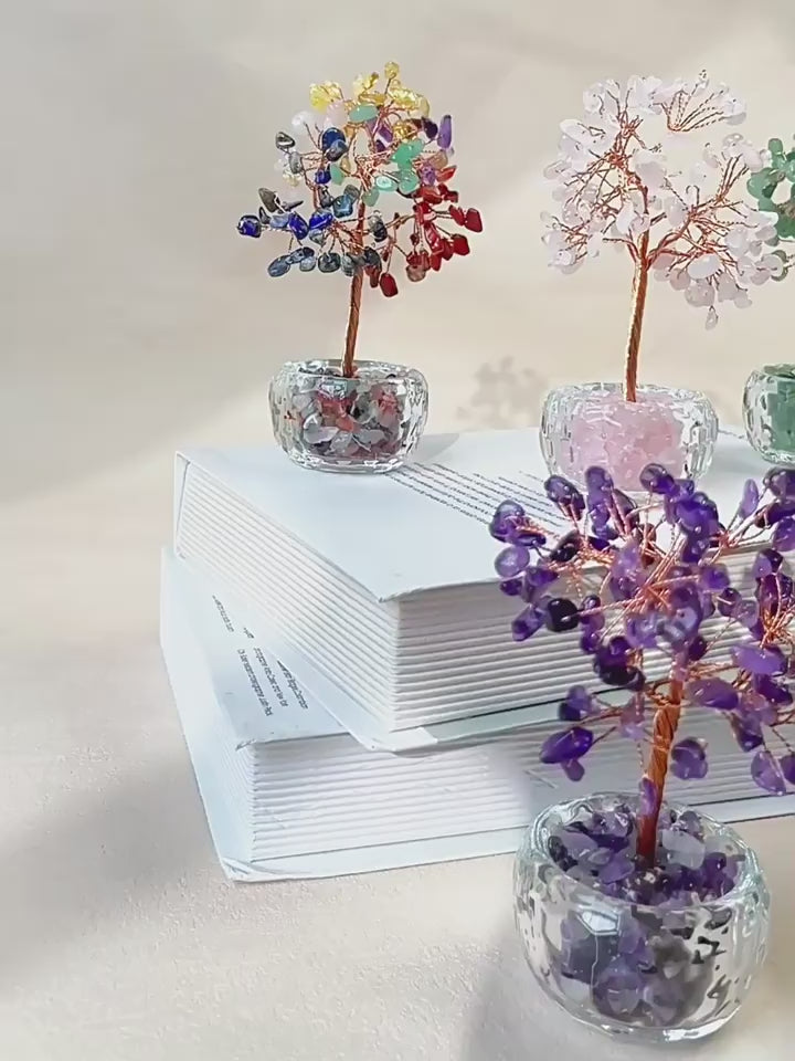 - Genuine Natural Gemstones: Each tree is handcrafted using authentic crystal chips—Amethyst (purple), Citrine (yellow), Rose Quartz (pink), Green Aventurine (green), or Multi-Color Mix. Every stone carries natural energy and unique beauty that synthetic materials cannot replicate.